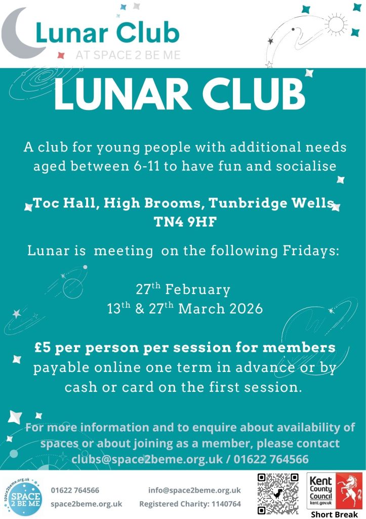 For more information and to enquire about availability of spaces or about joining as a member, please contact clubs@space2beme.org.uk / 01622 764566