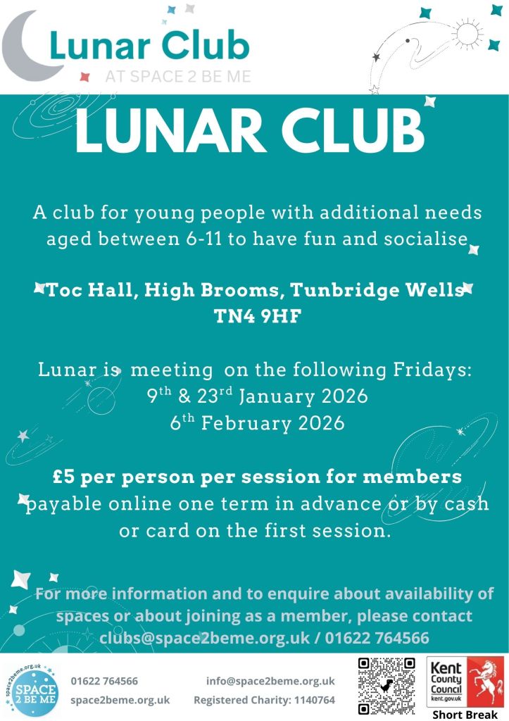 For more information and to enquire about availability of spaces or about joining as a member, please contact clubs@space2beme.org.uk / 01622 764566