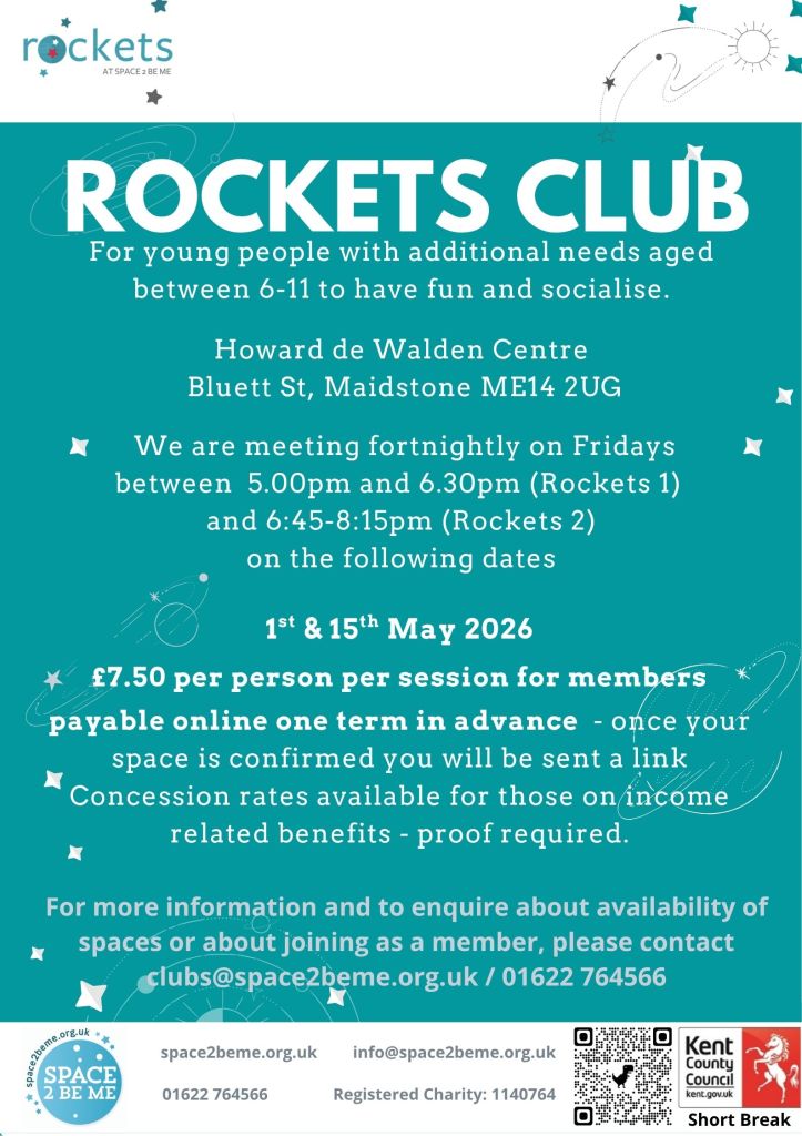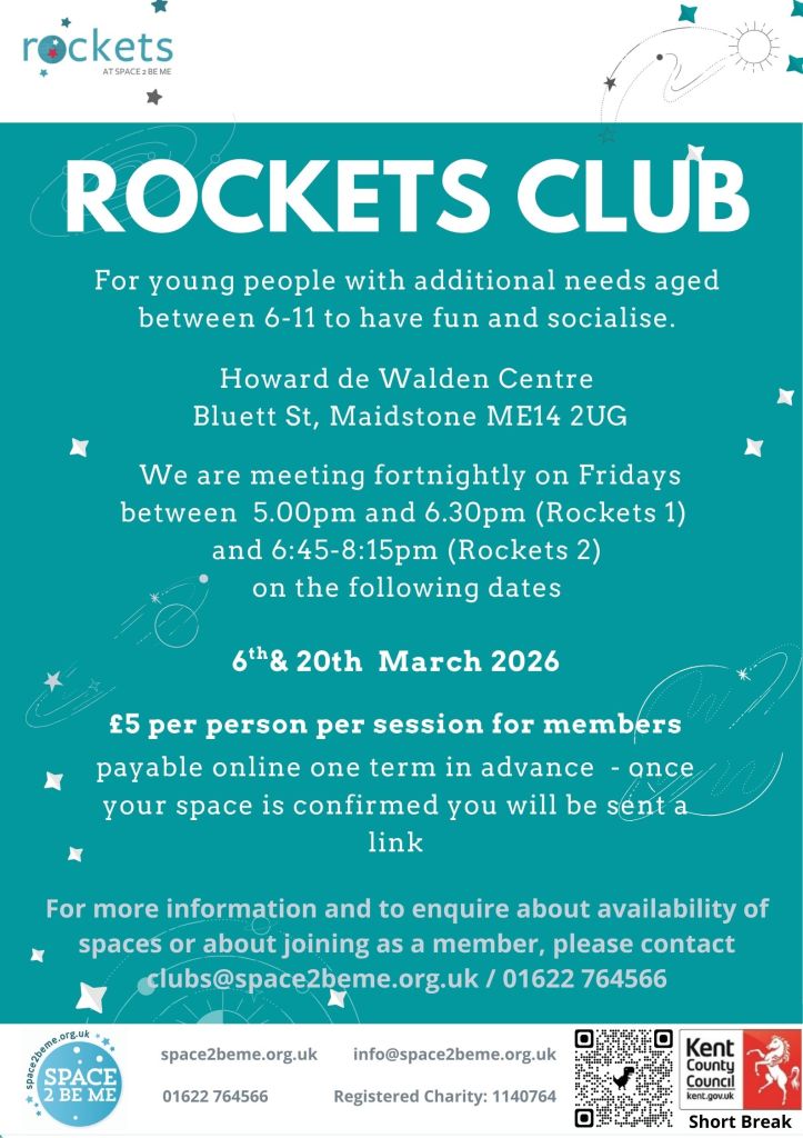 If you are interested in finding out more or to enquire about availability of spaces, please email clubs@space2beme.org.uk or call 01622 764566.