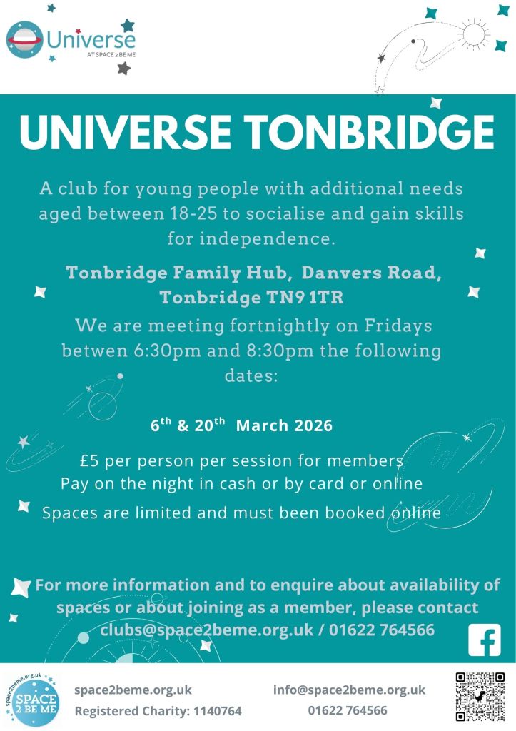 We run three Universe clubs, one in Maidstone, one in Tunbridge Wells and this one in Tonbridge.